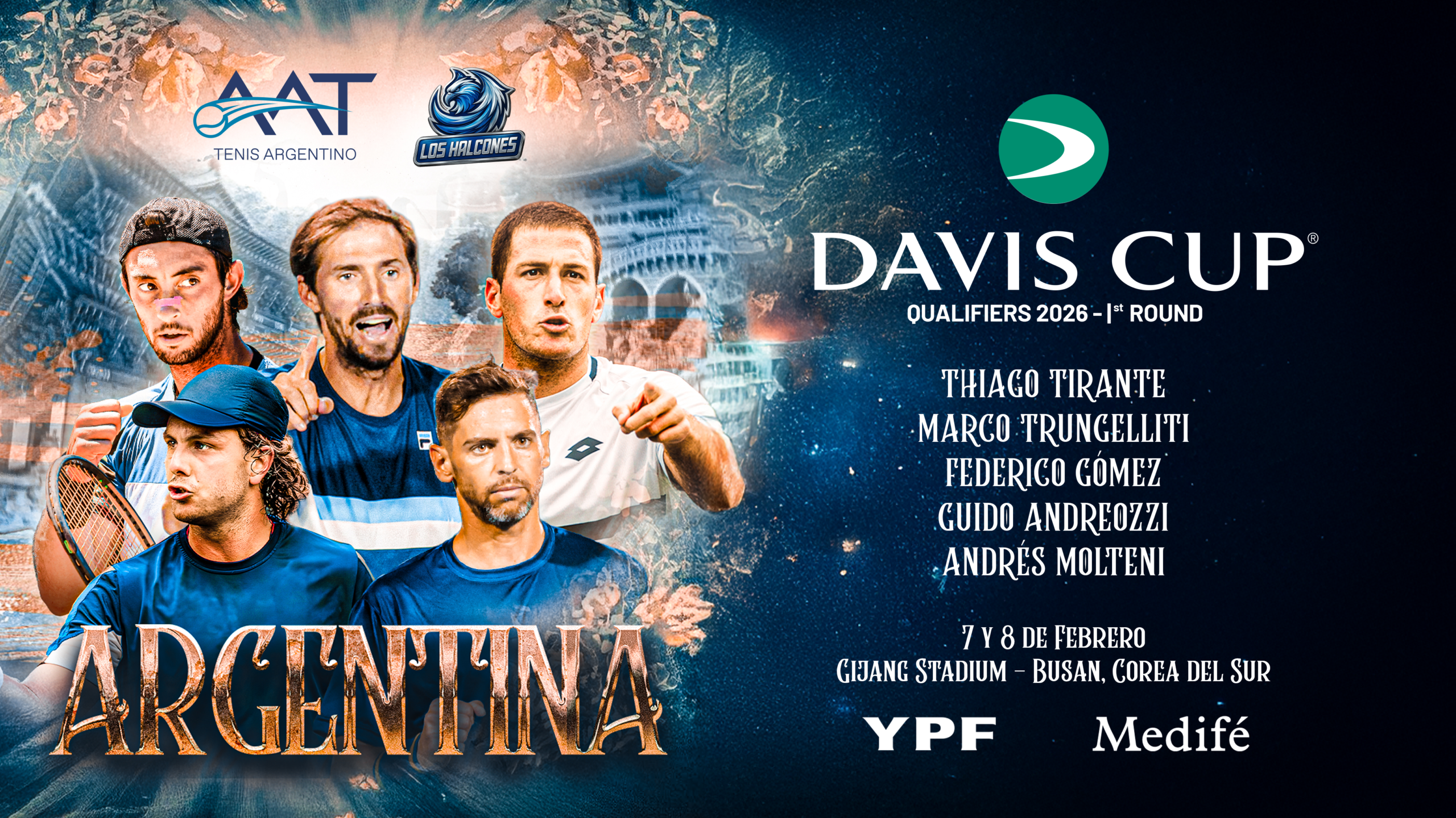 El capitán de la Selección Argentina de Tenis YPF, Javier Frana, anunció el equipo que visitará a Corea del Sur el 7 y 8 de febrero, en una serie correspondiente a la primera ronda de los Qualifiers de Copa Davis 2026 que se disputará en el Gijang Stadium de la ciudad de Busan, sobre superficie rápida.