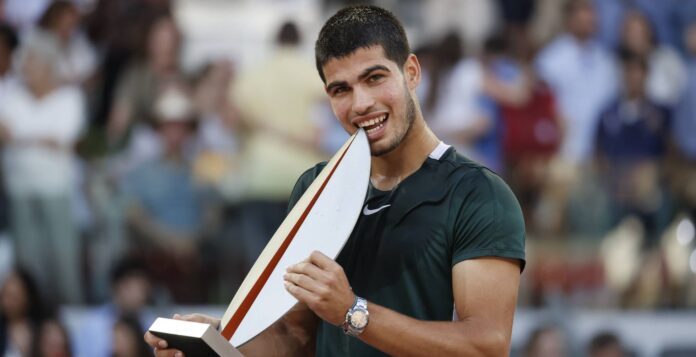El español Carlos Alcaraz, el tenista del momento, derrotó este domingo por 6-3 y 6-1 al número tres del mundo, el alemán Alexander Zverev, y se coronó campeón del Masters 1000 de Madrid.